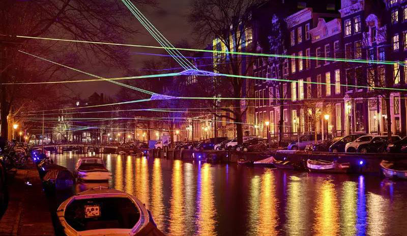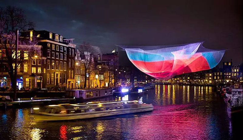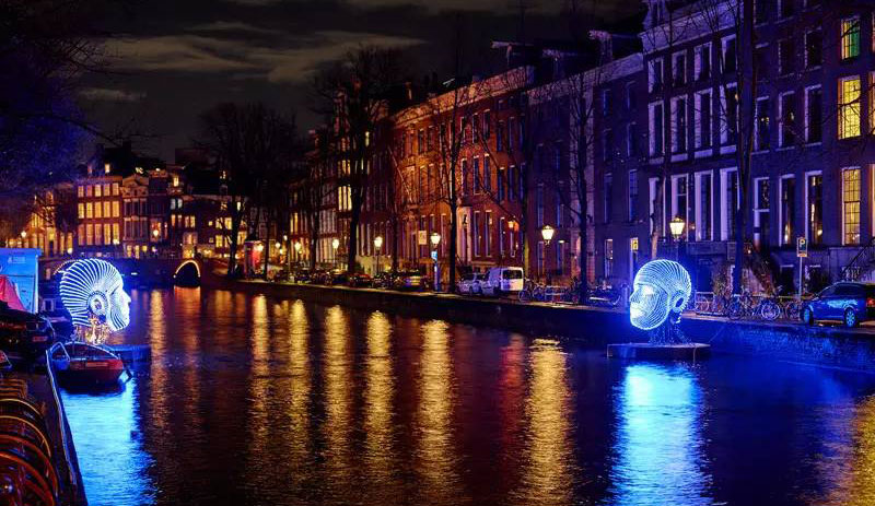 或許,阿姆斯特丹燈光節(jié)(Amsterdam Light Festival)是唯一一個能夠讓游客在船上徜徉、體驗藝術(shù)的燈光節(jié)。阿姆斯特丹燈光節(jié)在冬天拉開帷幕,一般在11月至12月開始,來年的1月結(jié)束,時間持續(xù)近兩個月。燈光節(jié)既有步行路線,又有獨(dú)特的乘舟路線。夜間,在船上,游客能夠看到被燈光裝點(diǎn)的河畔建筑,“航行”中提供的咖啡,則能夠驅(qū)散冬日的寒冷。