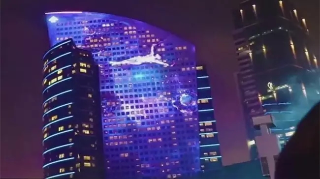 Laservision公司與迪拜IMAGINE大型展會(huì)合作打造了的3D投影秀,斬獲了“世界上最大的固定光雕投影”的吉尼斯世界紀(jì)錄。迪拜節(jié)日之城洲際酒店被改造成了一塊4857平方米的投影屏,這次加上 60臺(tái)Panasonic投影機(jī),以完美呈現(xiàn)3D動(dòng)態(tài)影像。這塊巨型的水幕表演已經(jīng)取得了世界上公認(rèn)的領(lǐng)先水準(zhǔn)。整個(gè)IMAGINE是結(jié)合了高清視頻、水幕、動(dòng)態(tài)噴泉、激光、環(huán)繞聲、智能燈光和火焰特效等諸多元素的一場大規(guī)模3D投影秀。