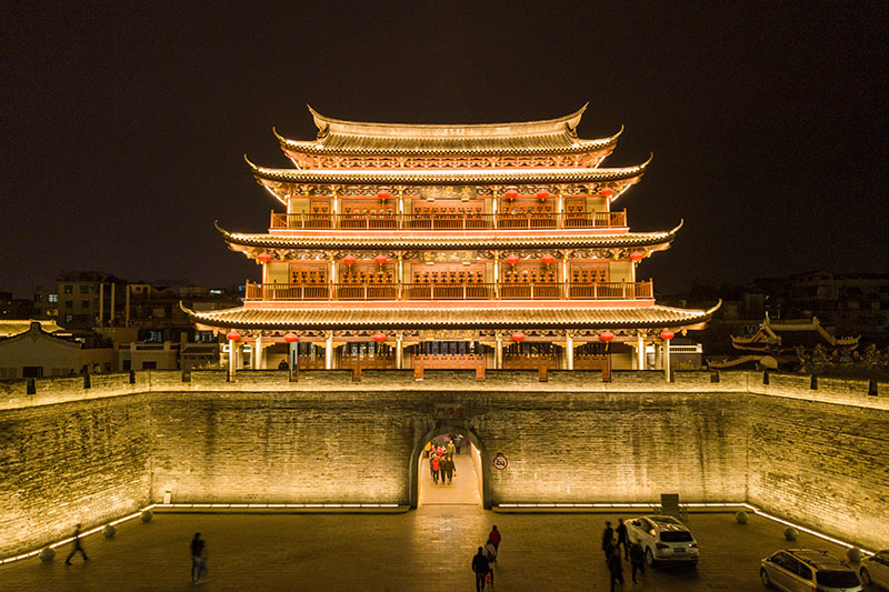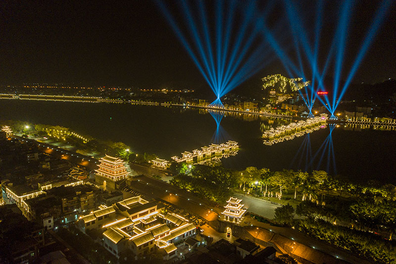 本次亮燈工程的設(shè)計(jì)團(tuán)隊(duì)曾負(fù)責(zé)G20峰會(huì)、杭州西湖夜景,由央視的燈光控制師親自操刀,他們的設(shè)計(jì)主題可濃縮為以下四句詩?!耙唤瓋砂度揭?,明滅樓臺(tái)號(hào)昌黎,水墨鄉(xiāng)愁丹青韻,和風(fēng)伴月思無邪?!?/p>